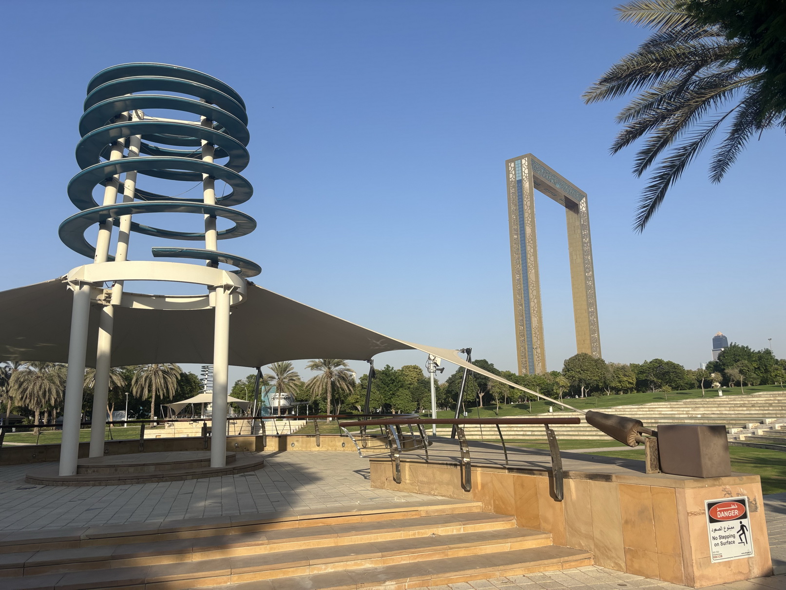 Amikor mi ott jártunk, éppen a Zabeel parkban volt a piac – neve is ZABEEL PARK FLEA MARKET – amit onnan könnyű megjegyezni/megtalálni, hogy ebben a parkban van a 120 x 90 m-es óriási dubai FRAME azaz képkeret. Itt kell leszállni a metróról. A metró megállótól kb 5 perc sétányira van a park. Megérkezünk a park bejáratához, ahol belépőt (asszem 10 dirham) kell fizetni a parkba való belépéshez (nem a bolhapiacra, csak az is itt van).